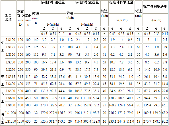 LS螺旋輸送機(jī)規(guī)格表: